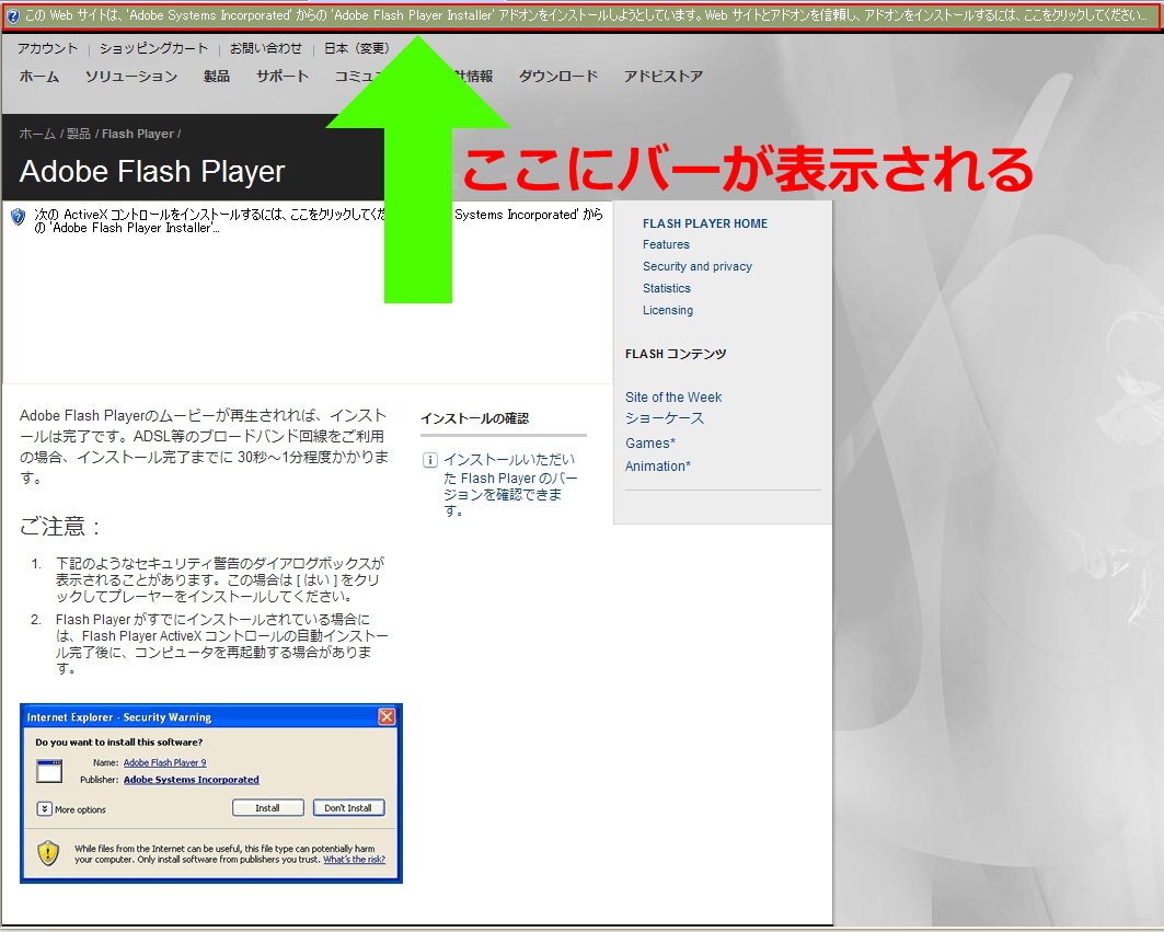 もし表示されていない場合、IEの設定を変更する必要があります。